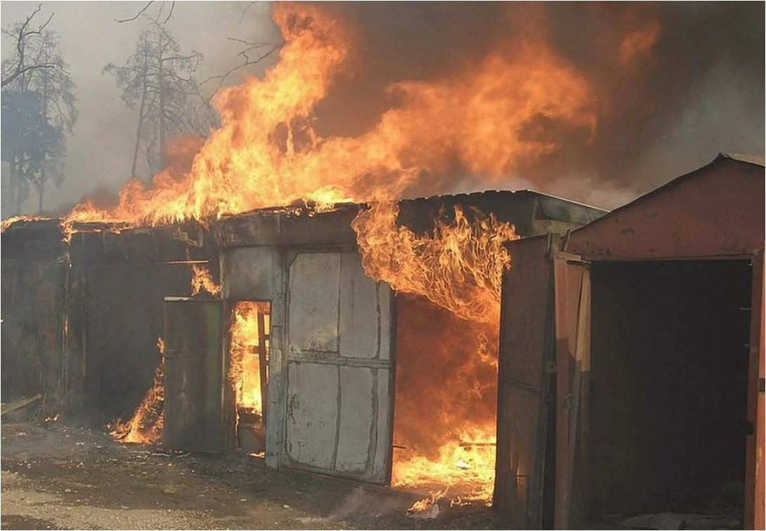 В результате возгорания гараж сгорел полностью