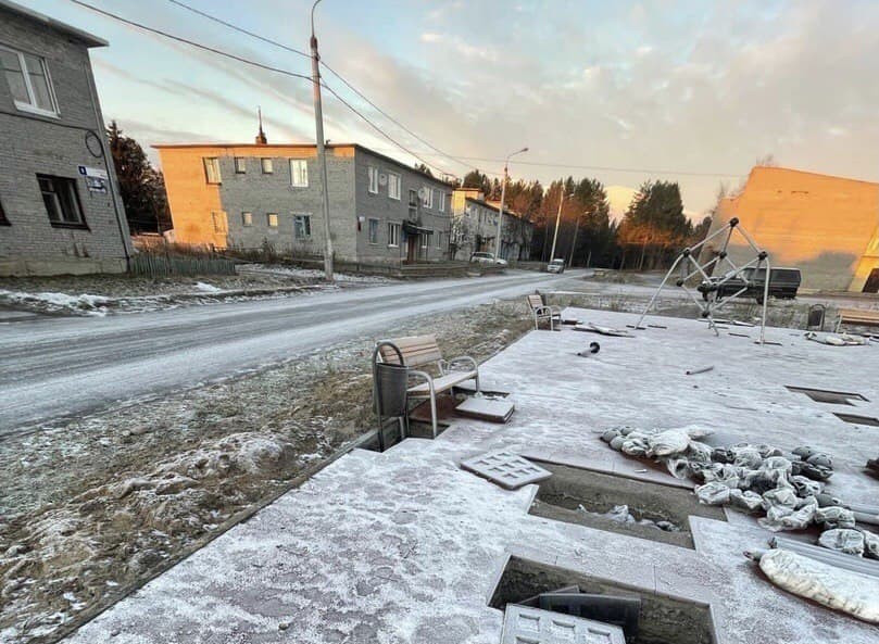 Жители села Лувеньга Кандалакшского района оказались недовольны прекращением работ по установке детской площадки. Летом на территории уложили бетонное основание и привезли часть элементов, после чего монтаж прекратился.
