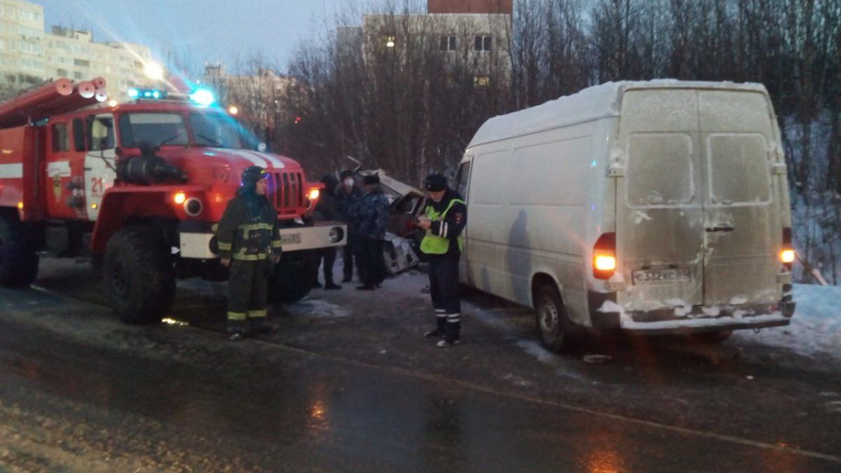 В воскресенье в Мурмашах на улице Кутахова столкнулись ВАЗ-2110 и микроавтобус Mercedes-Benz. Уточняется, что за рулем отечественного автомобиля находился 23-летний северянин, он двигался в сторону мурманского аэропорта. Потеряв контроль, мужчина выехал на встречную полосу. Два человека пострадали - водитель и пассажир ВАЗ-2110.