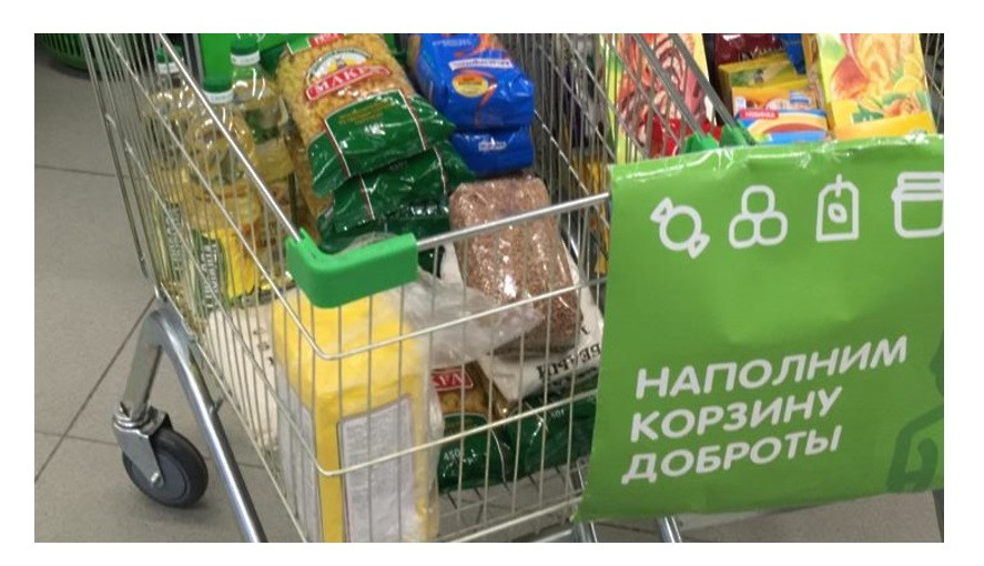Акция “Корзина доброты” проходит по всей России в 416 магазинах. Проект реализует Фонд продовольствия “Русь”.
