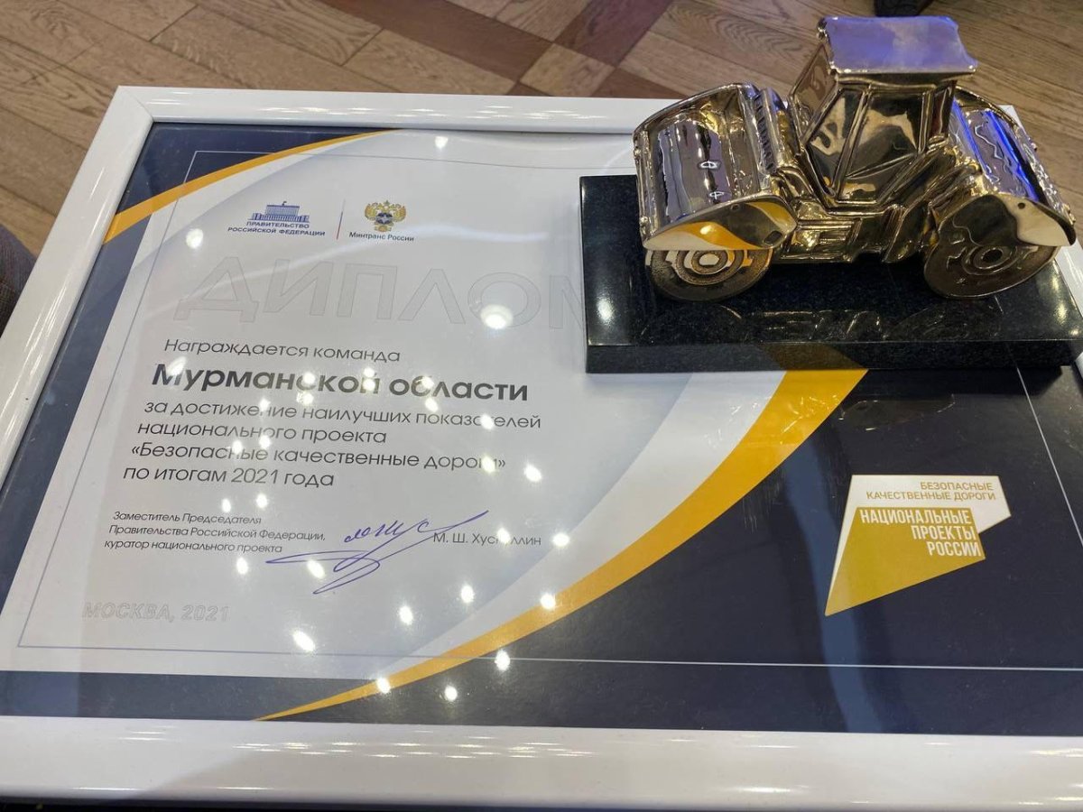 Мурманскую область отметили за достижение наилучших показателей национального проекта "Безопасные качественные дороги" по итогам 2021 года. Диплом правительства Российской Федерации и минтранса РФ за подписью председателя правительства Марата Хуснуллина доставят в регион. Награждение команды Мурманской области состоялось в рамках "Транспортной недели" в Москве.