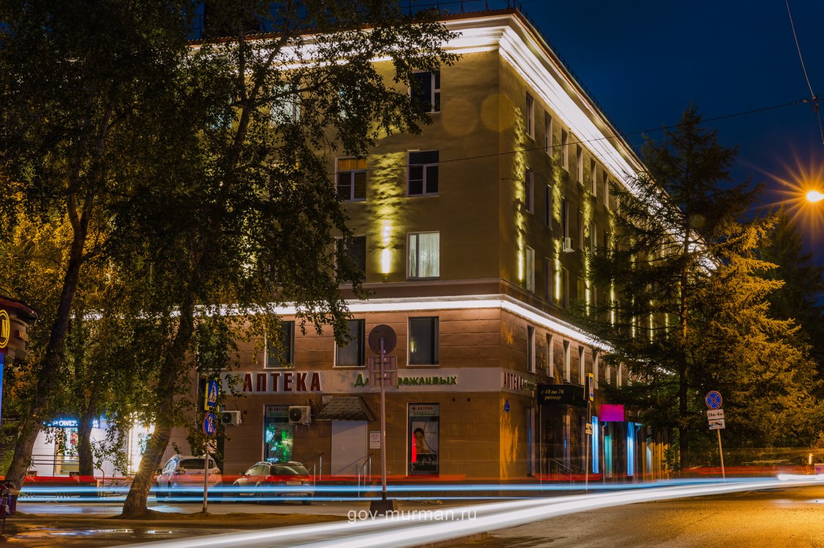 Кроме того, дополнительно выполнят работы по созданию архитектурно-художественной подсветки еще двух объектов. Центр городского развития подготовил эскиз и помог организовать подсветку для Мурманской взрослой поликлиники № 1.