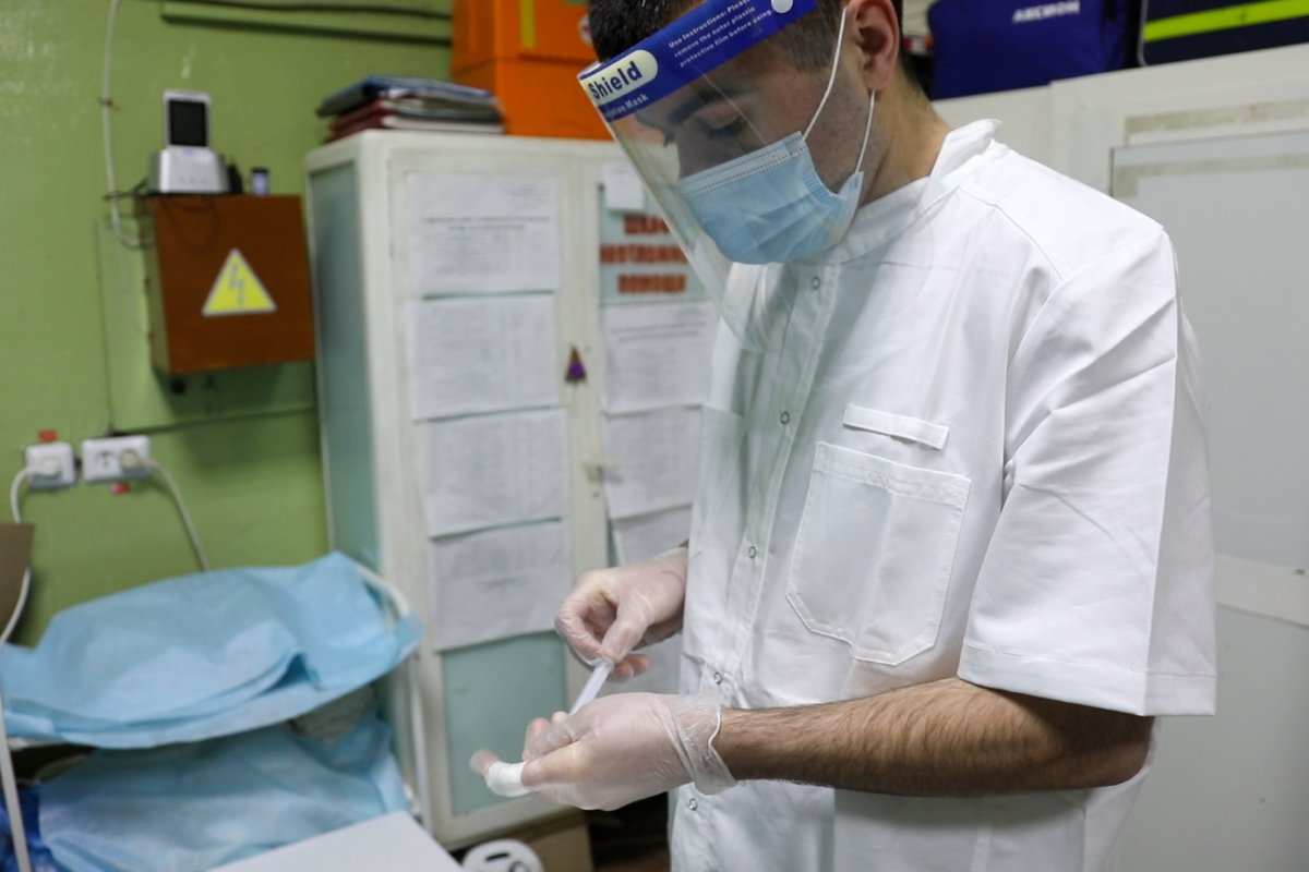 Прививки препаратом “Спутник V” делают военные медики из филиала Военно-морского клинического госпиталя. Вакцинация проходит в лазарете соединения. Перед инъекцией военнослужащим и гражданским меряют температуру и проверяют состояние их здоровья. Пациентов осматривает врач-терапевт.