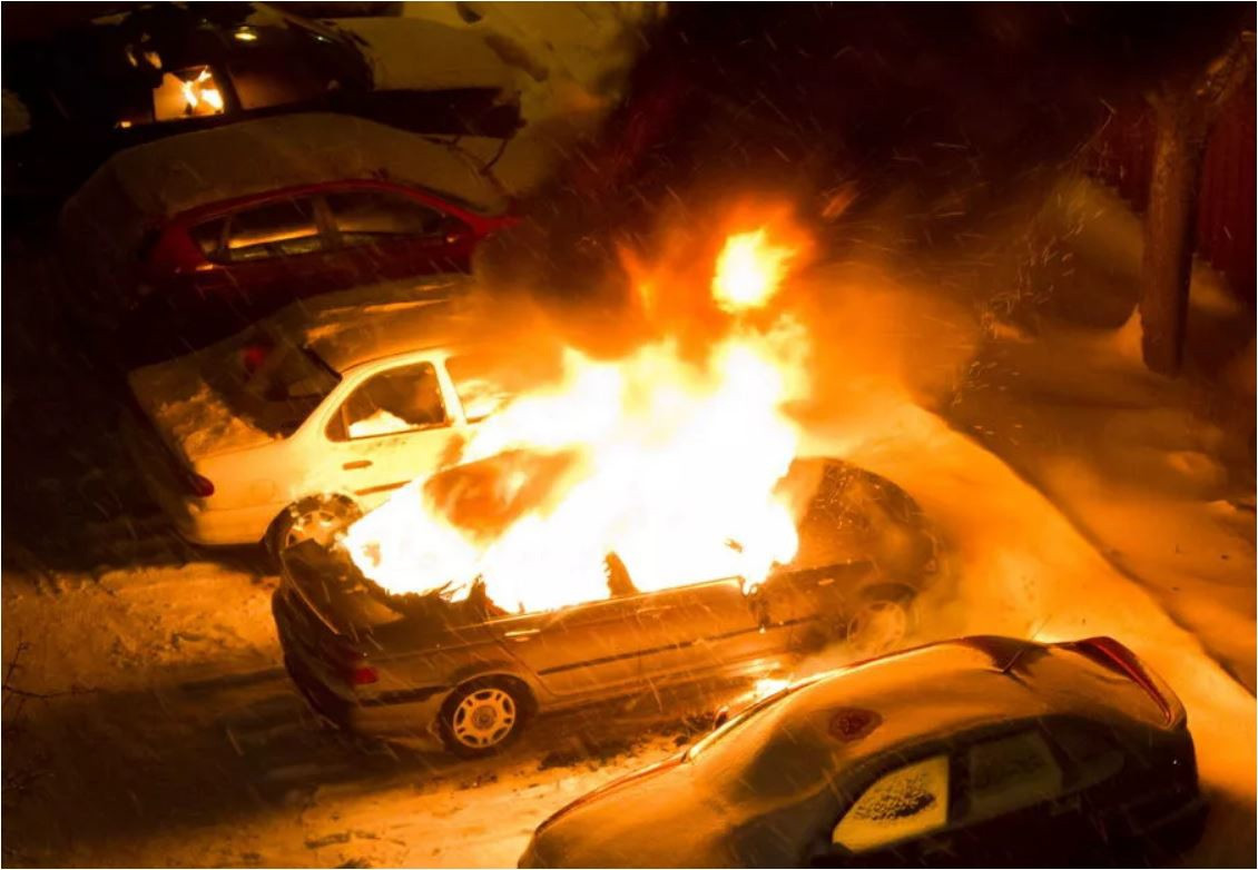 Одна машина сгорела полностью, другая - пострадала от теплового воздействия