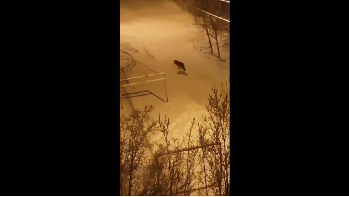 На улицах Оленегорска снова заметили волка. Видео в “ВК” опубликовала Лилия Бугрина.
