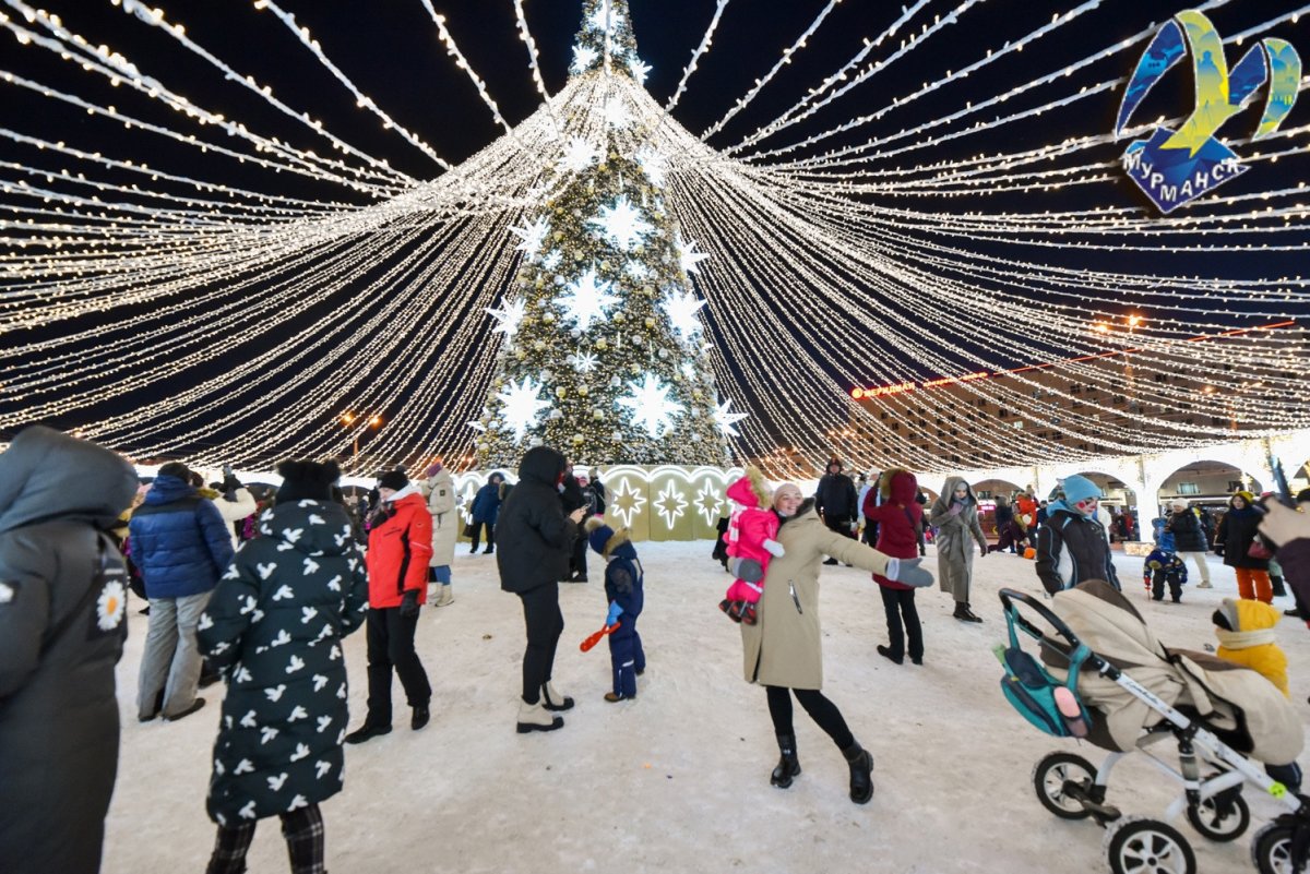 Огни на главной елке Мурманска зажгли сегодня, 5 декабря. В центре города прошли народные гуляния, сообщает администрация Мурманска.