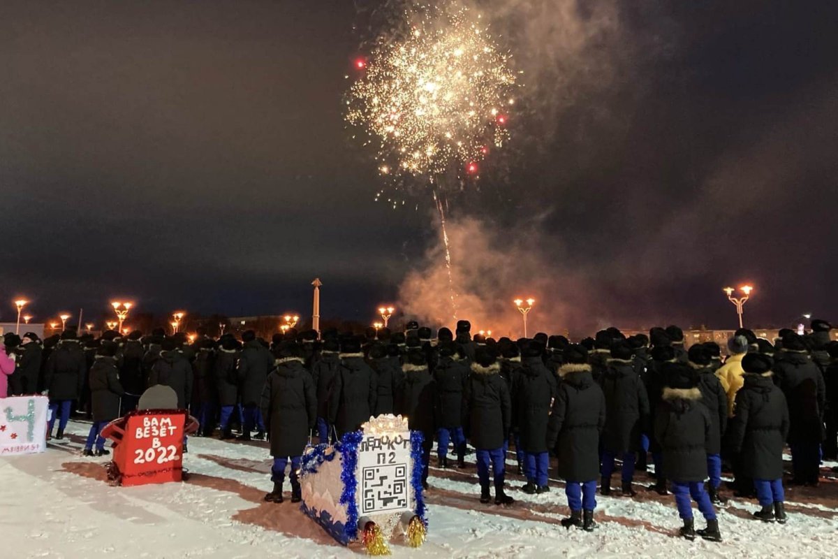 Новогодняя елка открылась в мурманском Нахимовском военно-морском училище. В церемонии участвовали учащиеся семи курсов. Нахимовцев поздравили Дед Мороз и Снегурочка, а родители подарили ученикам фейерверк.