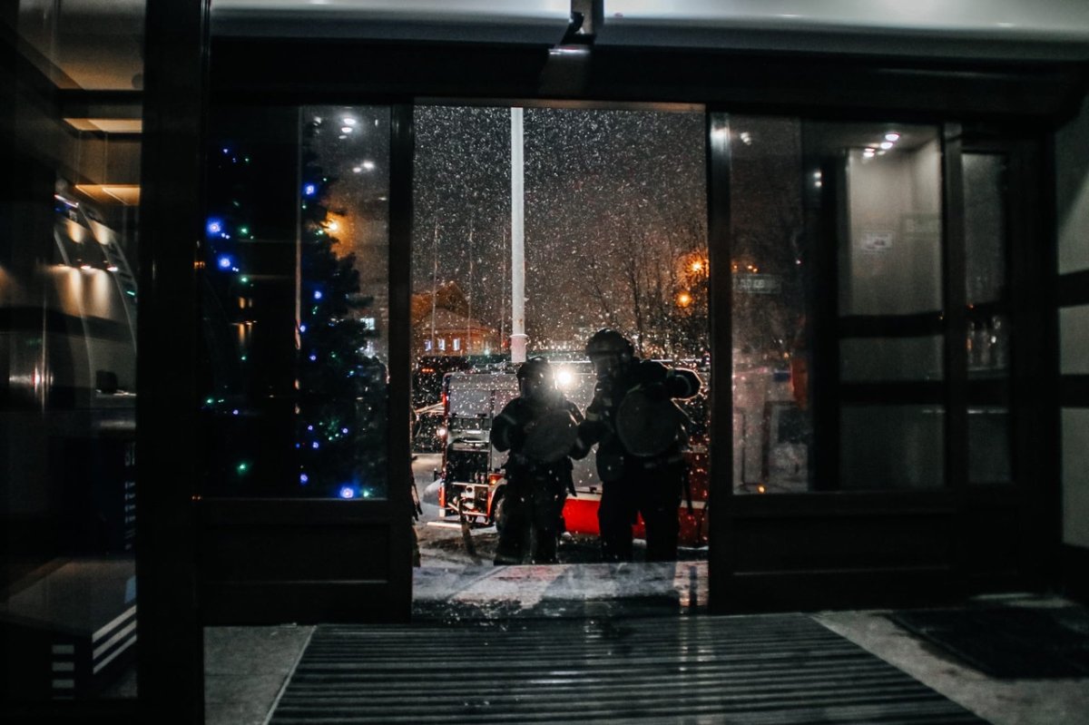 В учении участвовали силы и средства мурманского пожарно-спасательного гарнизона. Согласно легенде, из-за короткого замыкания на первом этаже произошло возгорание. От путей эвакуации отрезало 15 человек, они находились на седьмом этаже.