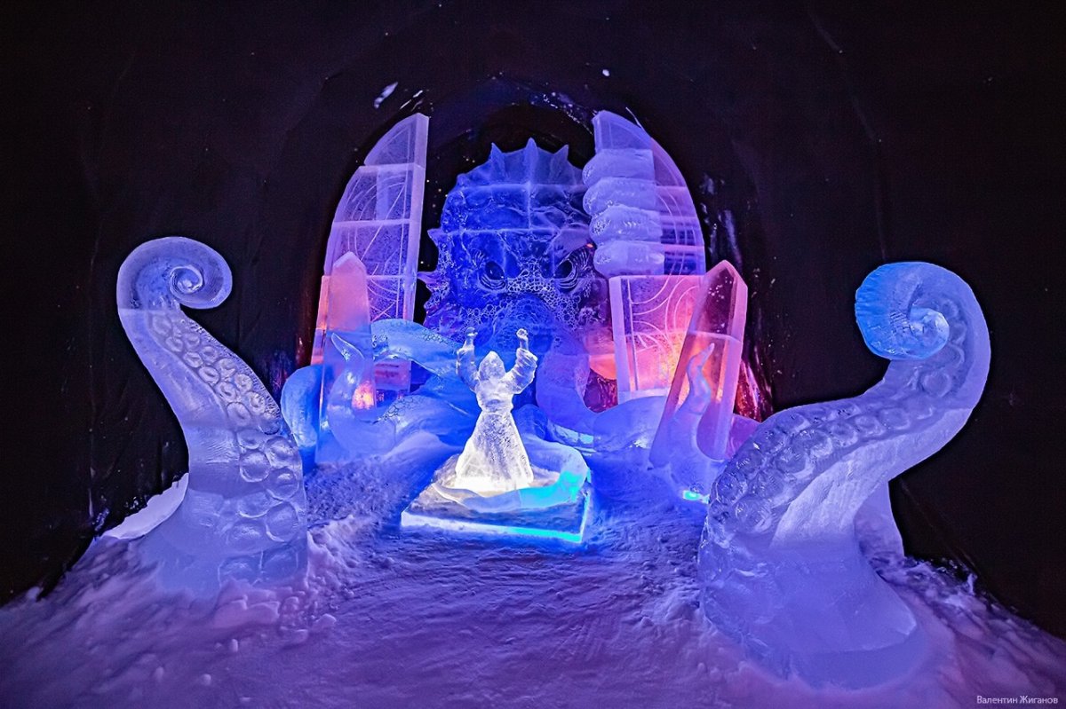 В Кировске начала работу "Снежная деревня". Темой скульптур 14 сезона стали "Лабиринты снов".