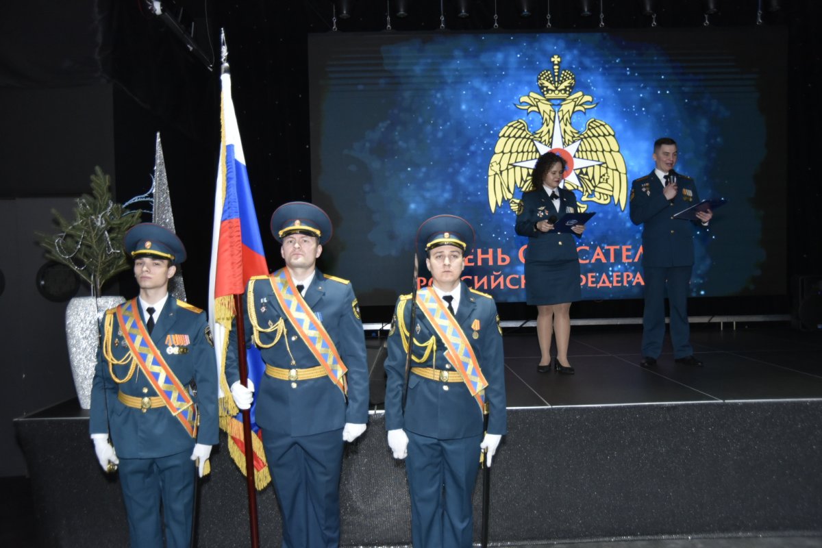 Церемония началась с выноса знамени Главного управления и государственного флага России. После этого с приветственным словом выступил начальник регионального ГУ МЧС Руслан Назаров. Он отметил, что гордится тем, что служит с такими людьми, которые так трепетно и неистово влюблены в свою профессию, с ветеранами, волонтёрами и кадетами.