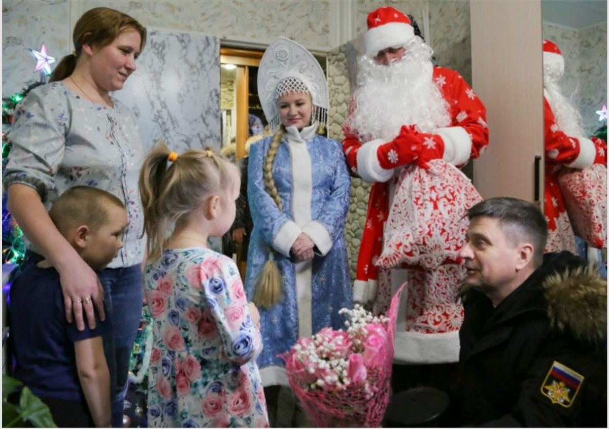 Аделине и её младшему брату Илье вручили новогодние подарки, о которых они мечтали. Девочке - игрушки из мультфильма My little pony, мальчику - машинки. Офицеры создали для всей семьи атмосферу новогоднего праздника.