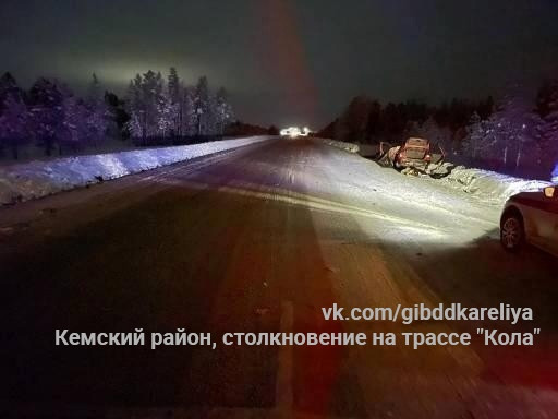 Во вторник, 11 декабря, в Карелии произошло смертельное ДТП с участием жителей Мурманской области. В 16:17 на 864 км + 388 м трассы "Кола" автомобиль "Лада Калина" при встречном разъезде с "Додж РАМ" с прицепом и грузовым автомобилем "ДАФ" с полуприцепом допустил выезд на встречную полосу и по касательной столкнулся с грузовиком.