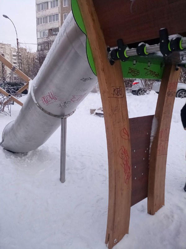 В Первомайском округе Мурманска вандалы испортили две новые детские площадки. Правонарушители оставили свои теги почти на каждом объекте.
