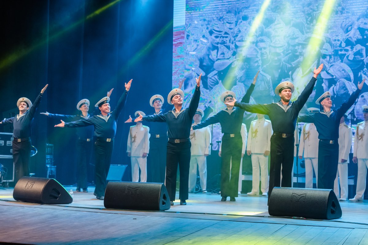 Концертную программу открыл ансамбль песни и пляски Краснознаменного ордена Ушакова Северного флота. На сцене дворца культуры выступил народный артист РФ Олег Газманов.