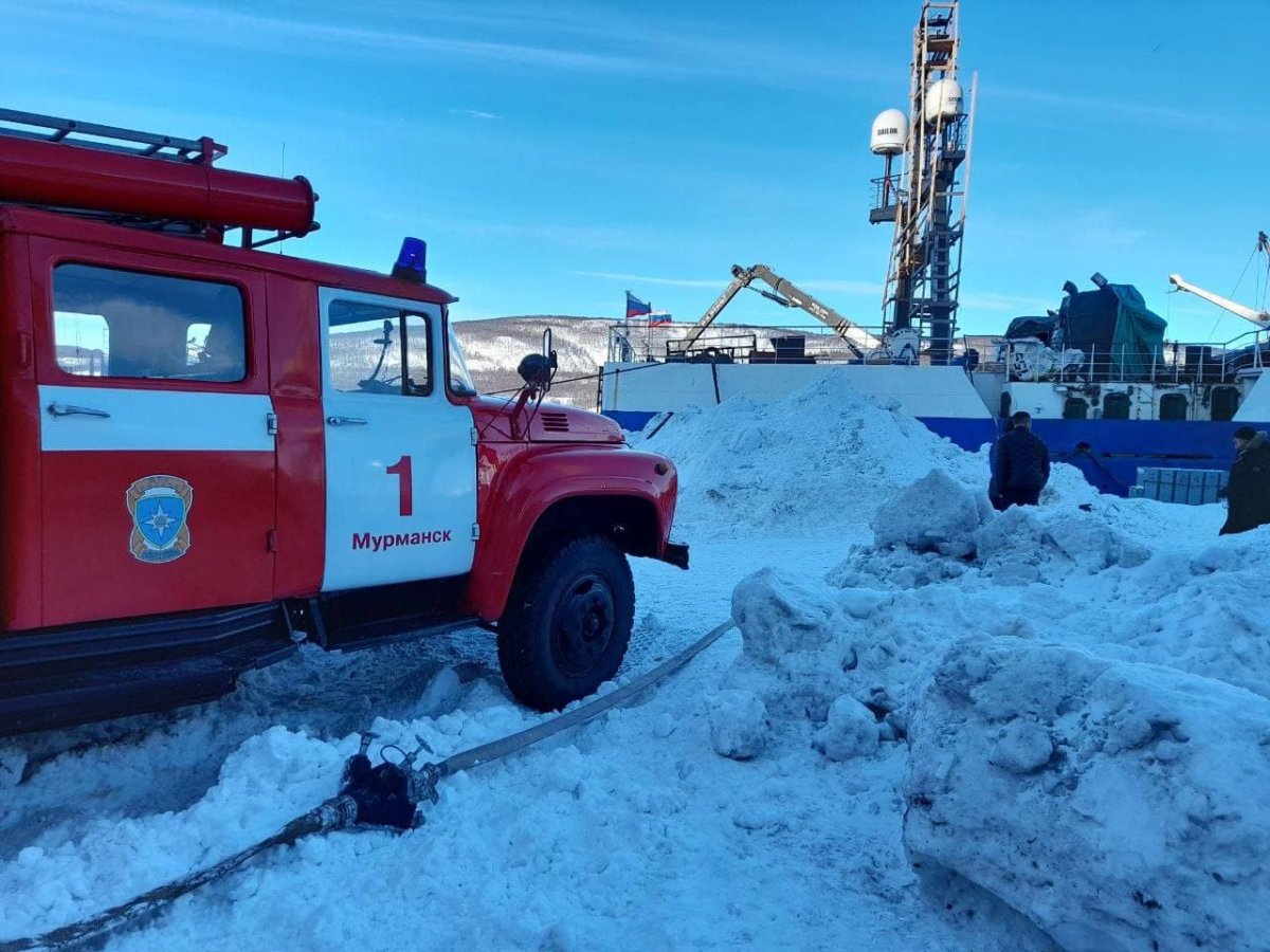 К причалу №11 Мурманской судоверфи прибыли 29 пожарных и восемь единиц техники. Они локализовали пожар и ликвидировали открытое горение.