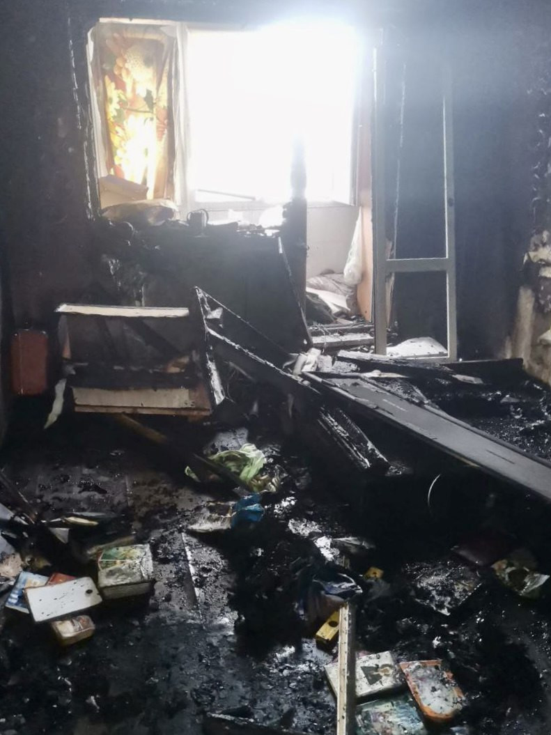 На место прибыли два пожарно-спасательных подразделения – 10 человек и три единицы техники. В результате пожара обгорели вещи на площади десять квадратных метров. Квартира закоптилась по всей площади.
