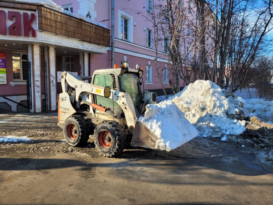 С улично-дорожной сети Мурманска 16 марта вывезли 11 650 кубометров снега. Днем в снегоуборочных работах были задействованы 107 единиц техники, ночью - 112.