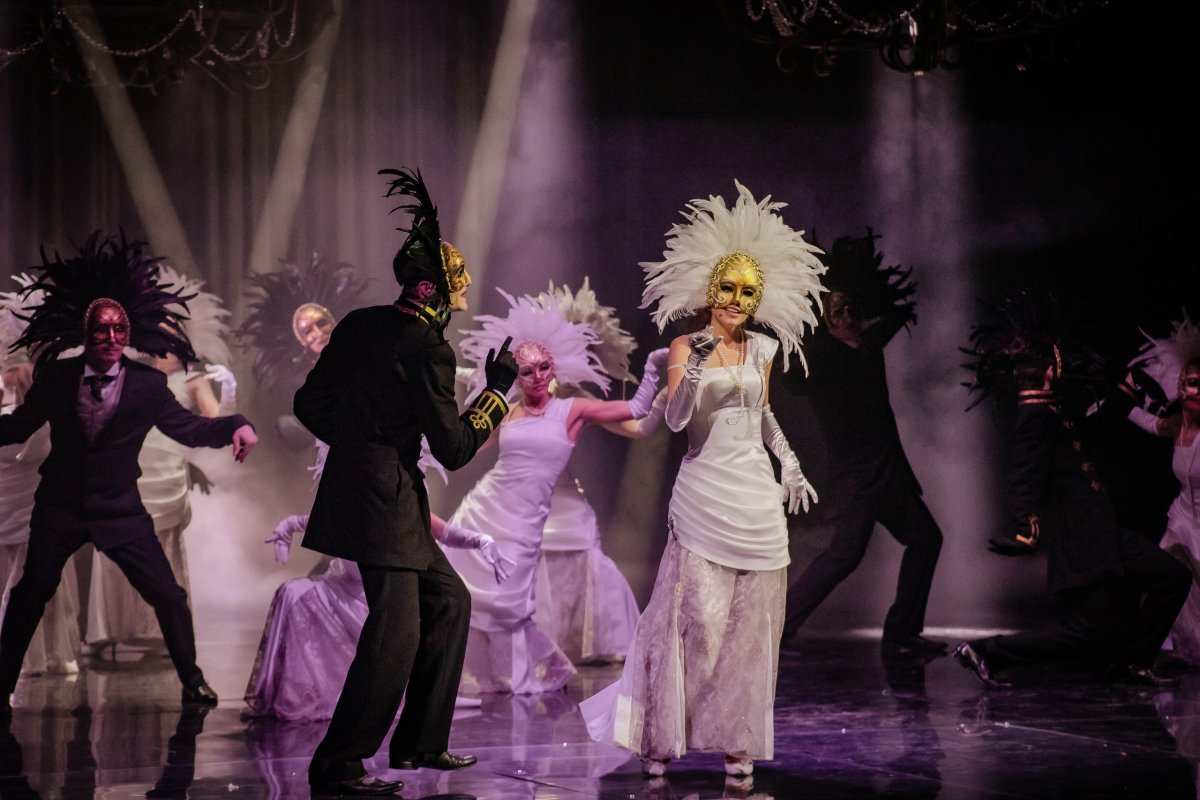 Произведение Лермонтова само по себе подразумевает наличие балов и маскарадов, поэтому и спектакль получился музыкальный: в нем будет много джазовой музыки. Режиссер при постановке спектакля несколько ушел от эпохи автора и переместил действия в начало 20 века.