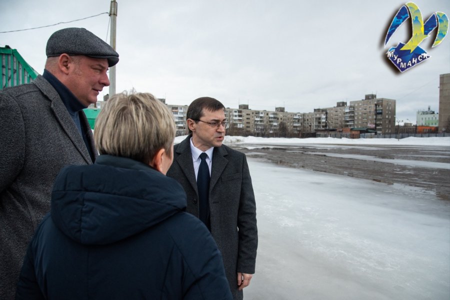На фото: глава Мурманска Игорь Морарь осматривает стадион “Юность” на улице Героев Рыбачьего