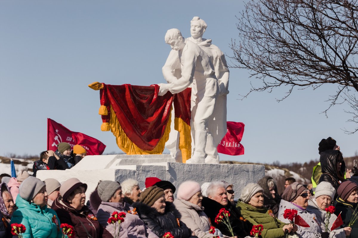 По окончании митинга парадным строем прошли военнослужащие Северного флота. Затем участники торжества возложили венки и цветы в память о подвигах советских солдат к памятнику "Скорбящая мать".