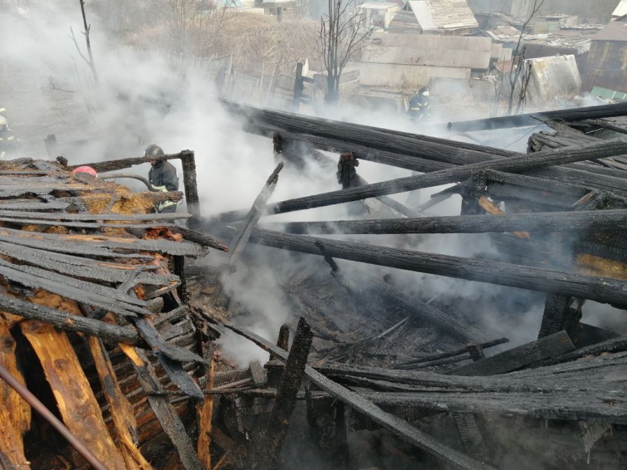 Возгорание произошло около 12:50. Когда пожарно-спасательные подразделения прибыли на место ЧП, половина хозпостройки горела открытым пламенем, была угроза распространения огня на соседние деревянные строения.