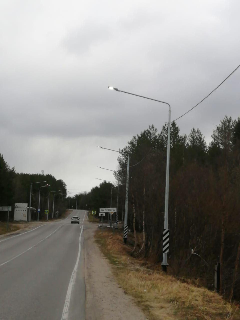 На участке автомобильной дороги общего пользования регионального значения Умба – Кандалакша с отметки 93 км 348 метров до отметки 94 км 308 метров в районе населенного пункта Лувеньга включена линия наружного освещения. Таким образом, освещение выполнено на 960 метрах автомагистрали.