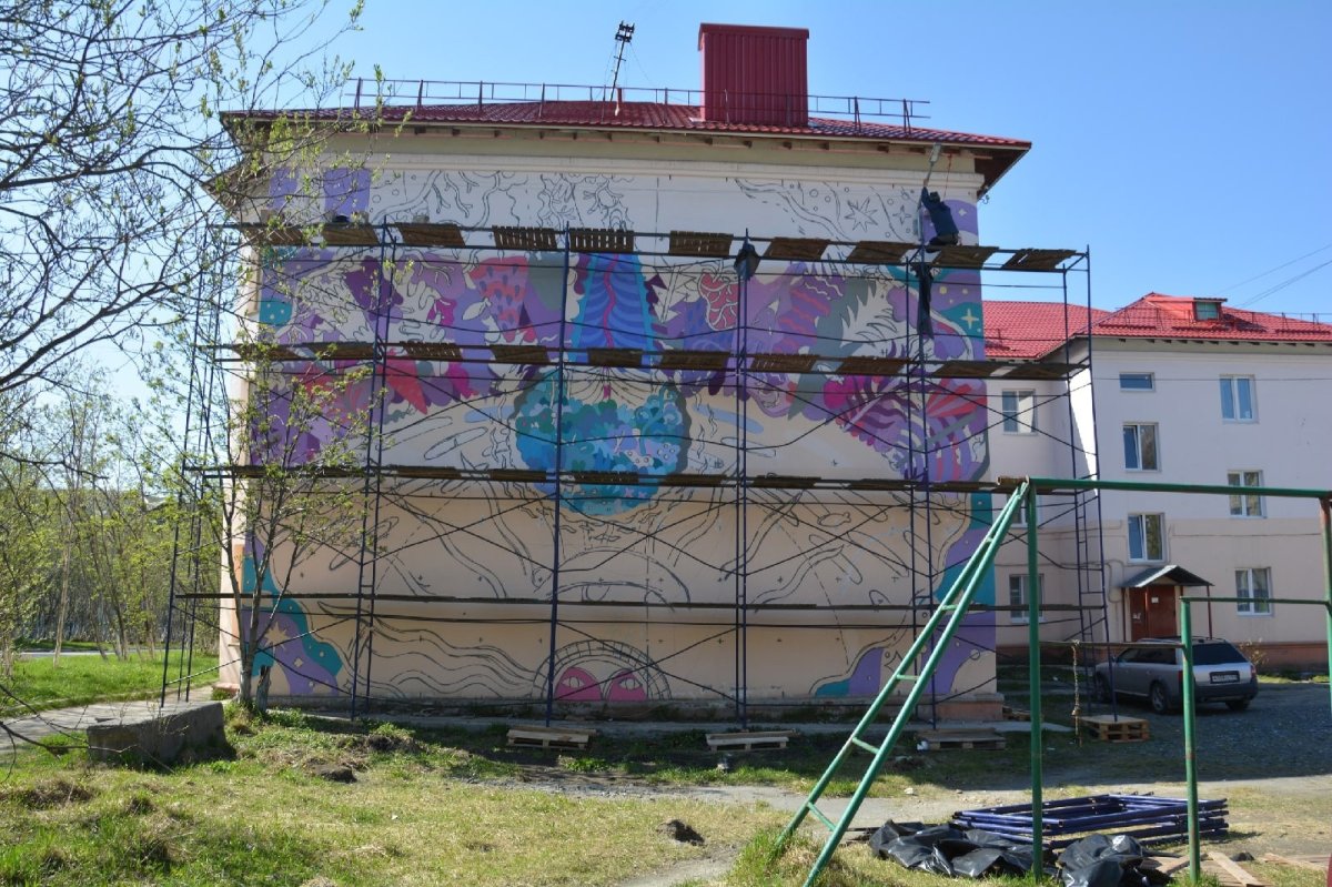 Ранее "Би-порт" сообщал, что на фасаде школы спортивной борьбы в Ленинском округе Мурманска появился первый в этом сезоне мурал.