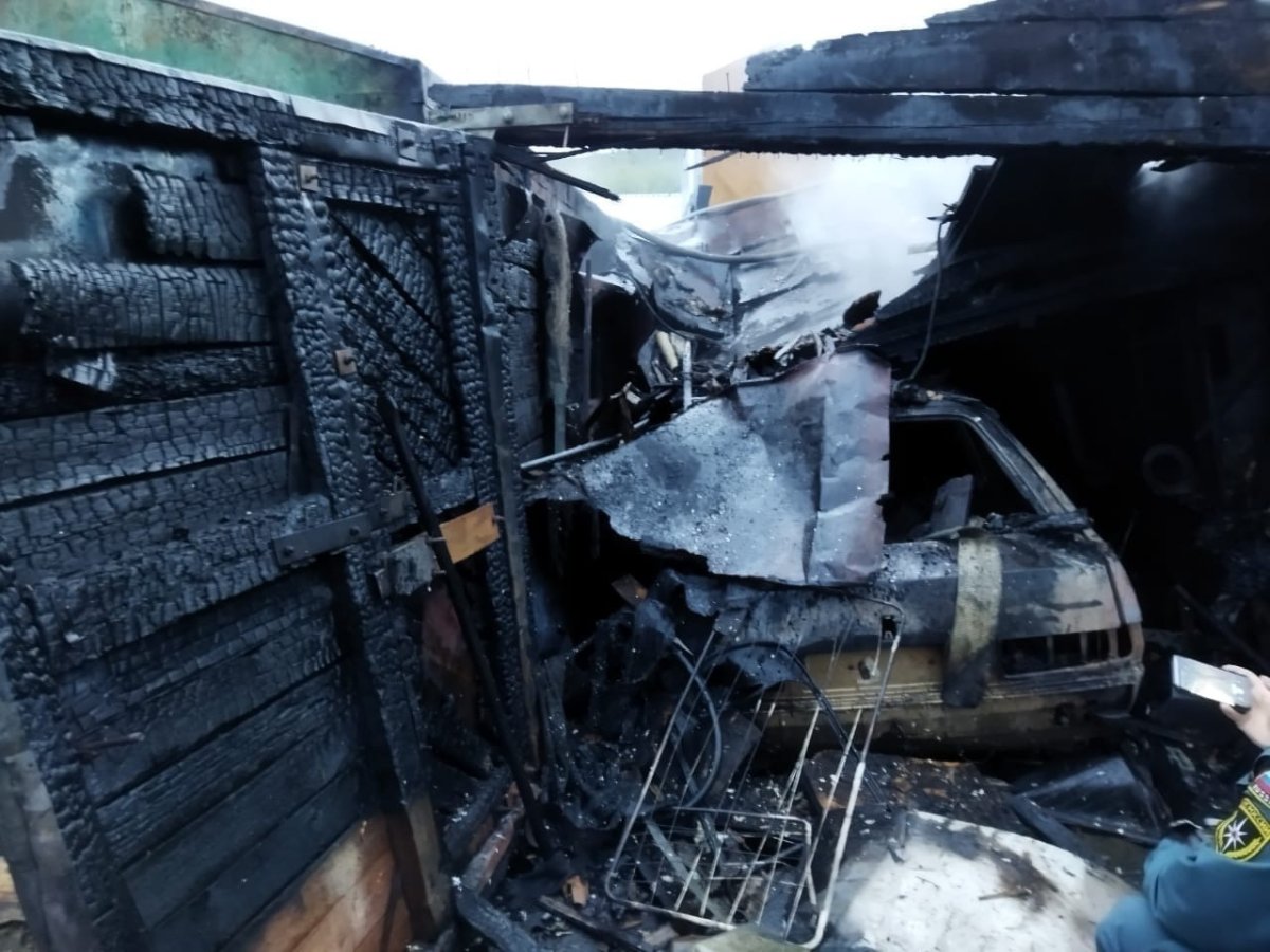 Огонь охватил деревянно-металлический гараж площадью четыре на шесть кв.м. Внутри был кузов автомобиля Volvo. Существовал риск перехода пламени на соседние постройки, что значительно бы увеличило площадь пожара.