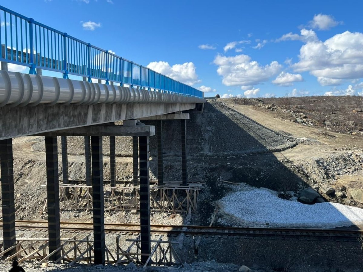 Мост через железную дорогу на участке км 4+597 автодороги "Заполярный - Сальмиярви" готов на 99%. Движение по путепроводу уже открыто.