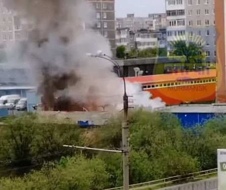 Сигнал о возгорании деревянно-металлического торгового павильона Первомайского рынка на улице Щербакова, 11 в Мурманске поступил на пульт дежурных служб в 5:47.