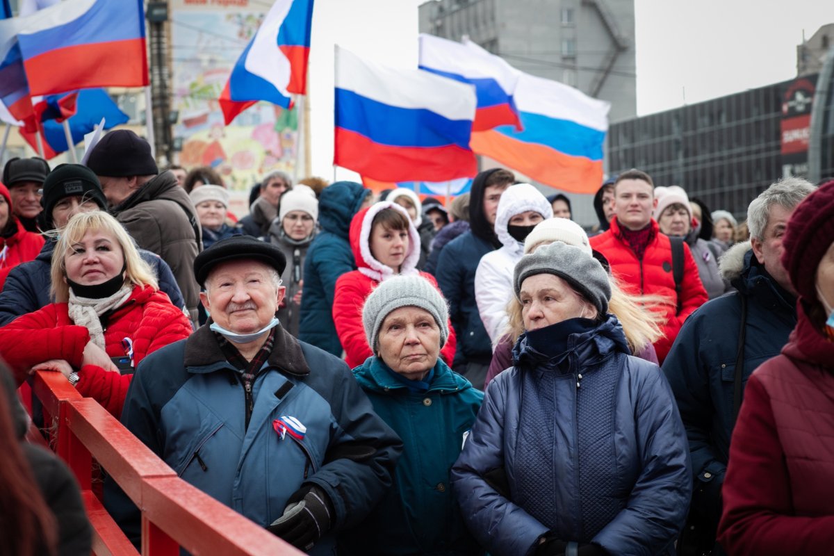 Фото: Мурманчане смотрят на Пяти Углах концерт, посвященный воссоединению Крыма с Россией
