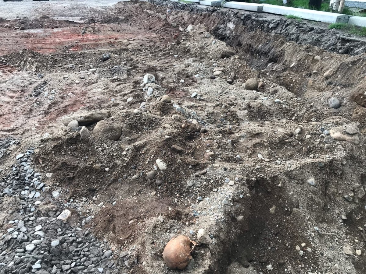 Череп и кости нашли 9 июня во время проведения ремонтных работ между домами 26 и 29 по Советскому проспекту. Предполагается, что в довоенный период времени на данном участке местности располагалось кладбище.