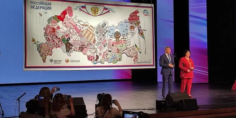 Всего в акции участвовали порядка 200 мастеров декоративно-прикладного искусства. Презентация карты прошла в Чувашской государственной филармонии Чебоксаров в преддверии дня России. Арт-объект будет путешествовать по всем федеральным округам страны.