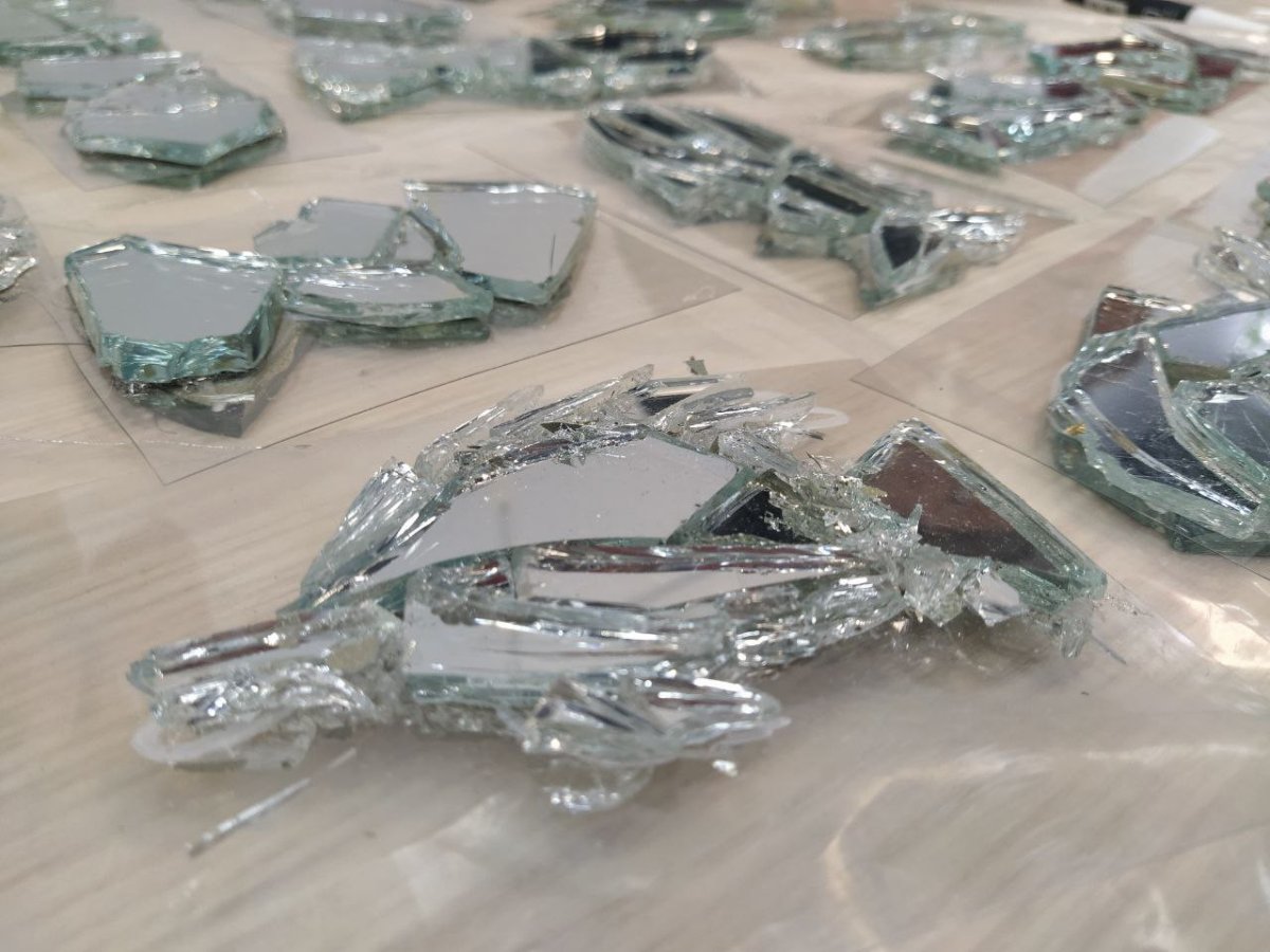 На выставке мурманчане смогут увидеть разные воплощения рыб. Они нарисованы на холсте и собраны из осколков зеркала, стекла. Рыбы будут как на стенах, так и "плыть" косяком по залу.