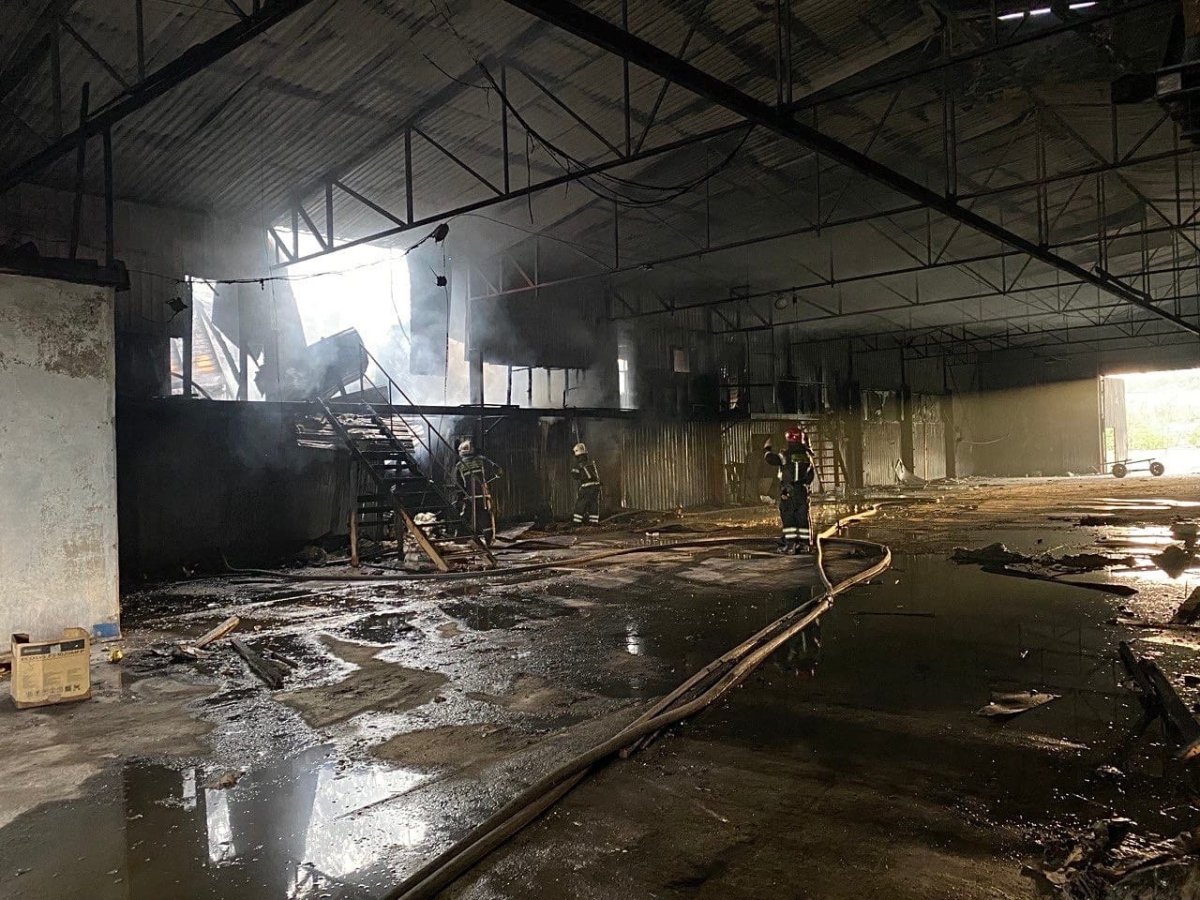 В результате пожара в ангаре обгорели деревянные конструкции и внутренняя обшивка на площади 70 квадратных метров. Причина устанавливается.