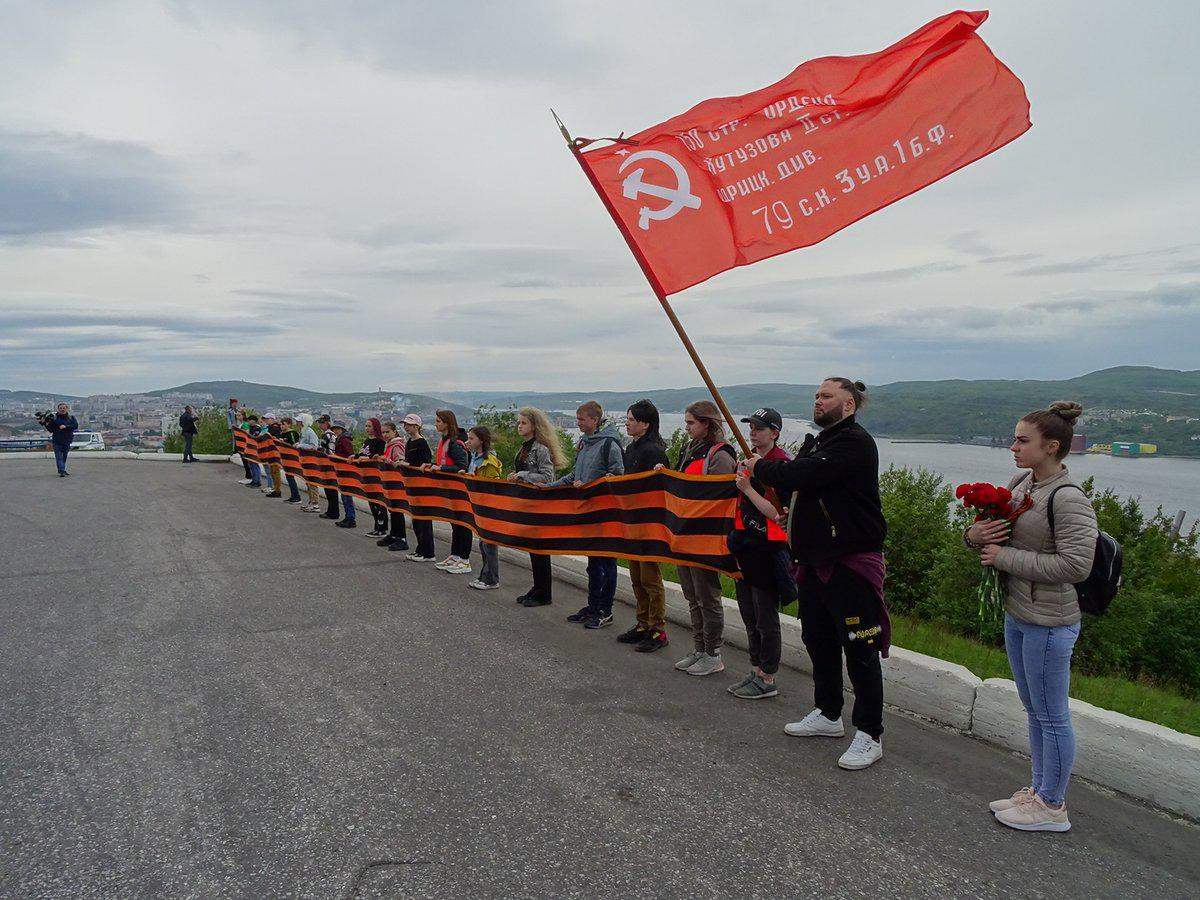 В День памяти и скорби, 22 июня, в Мурманске состоялся флешмоб под названием “Огненная картина войны”. Около мемориала «Защитникам Советского Заполярья в годы Великой Отечественной войны» волонтеры, школьники, студенты совместно с активистами партии “Единая Россия” растянули красное полотнище с хэштегом “Север помнит” размером 7,5 метра на 11 метров. Всего во флешмобе участвовало более 70 человек.