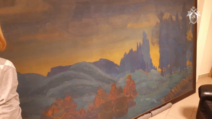 Напомним, картина "Поморяне. Вечер" была написана в 1907 году Николаем Рерихом в Индии. На ней изображены несколько человек, одетые в национальные костюмы, которые сидят у костра при свете заката. Картина хранилась у вдовы художника, а затем попала в коллекцию Университета Брандайса в США.