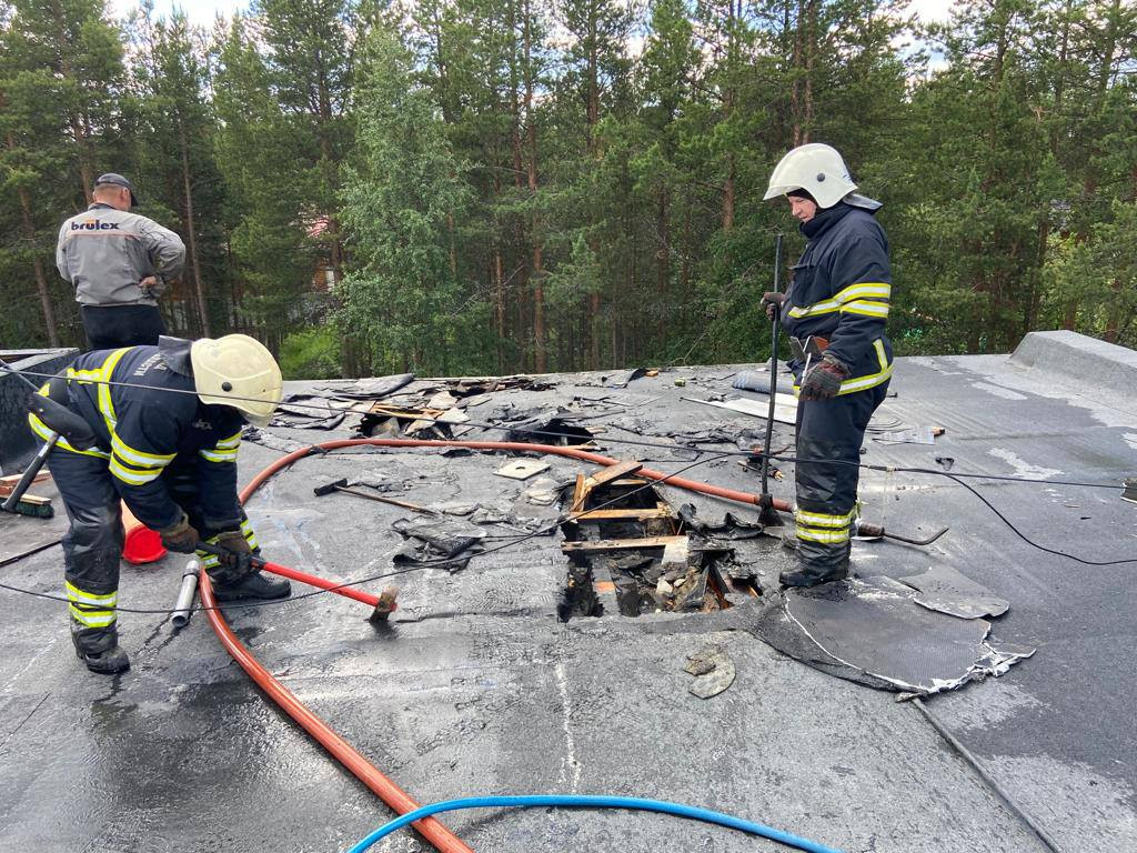 Как сообщает управление по ГОЧС и ПБ Мурманской области, в доме №9 горела кровля. Огонь повредил битумную кровлю с деревянной обрешеткой на площади 10 квадратных метров. Спасатели для вскрытия конструкций применяли бензопилу.