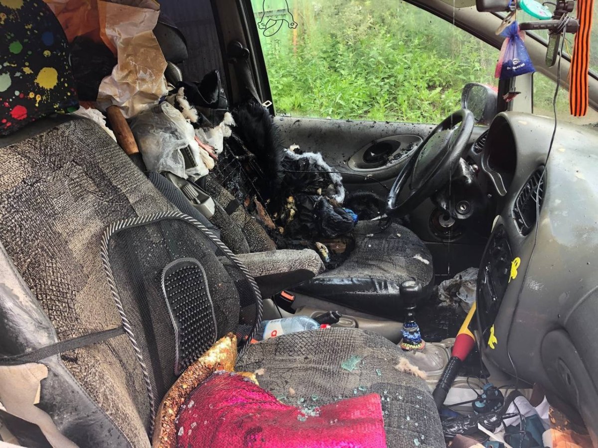 В результате пожара обгорели передние сидения автомобиля, пластиковые детали обивки салона расплавились. Пострадавших в результате происшествия нет. Причины возгорания устанавливаются.