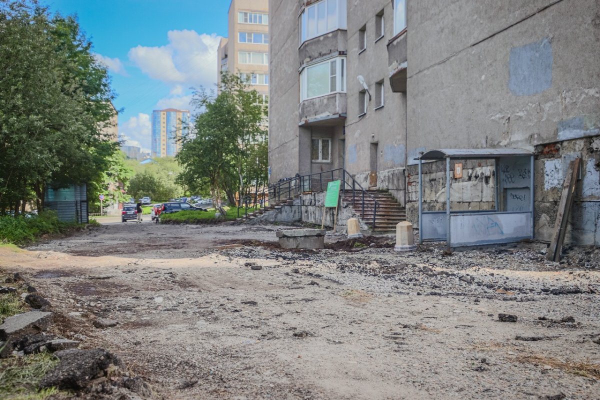 Сейчас проводятся демонтажные работы. Затем подрядчику предстоит провести ремонт проезжей части, обустроить контейнерную площадку, установить две опоры освещения и провести озеленение.