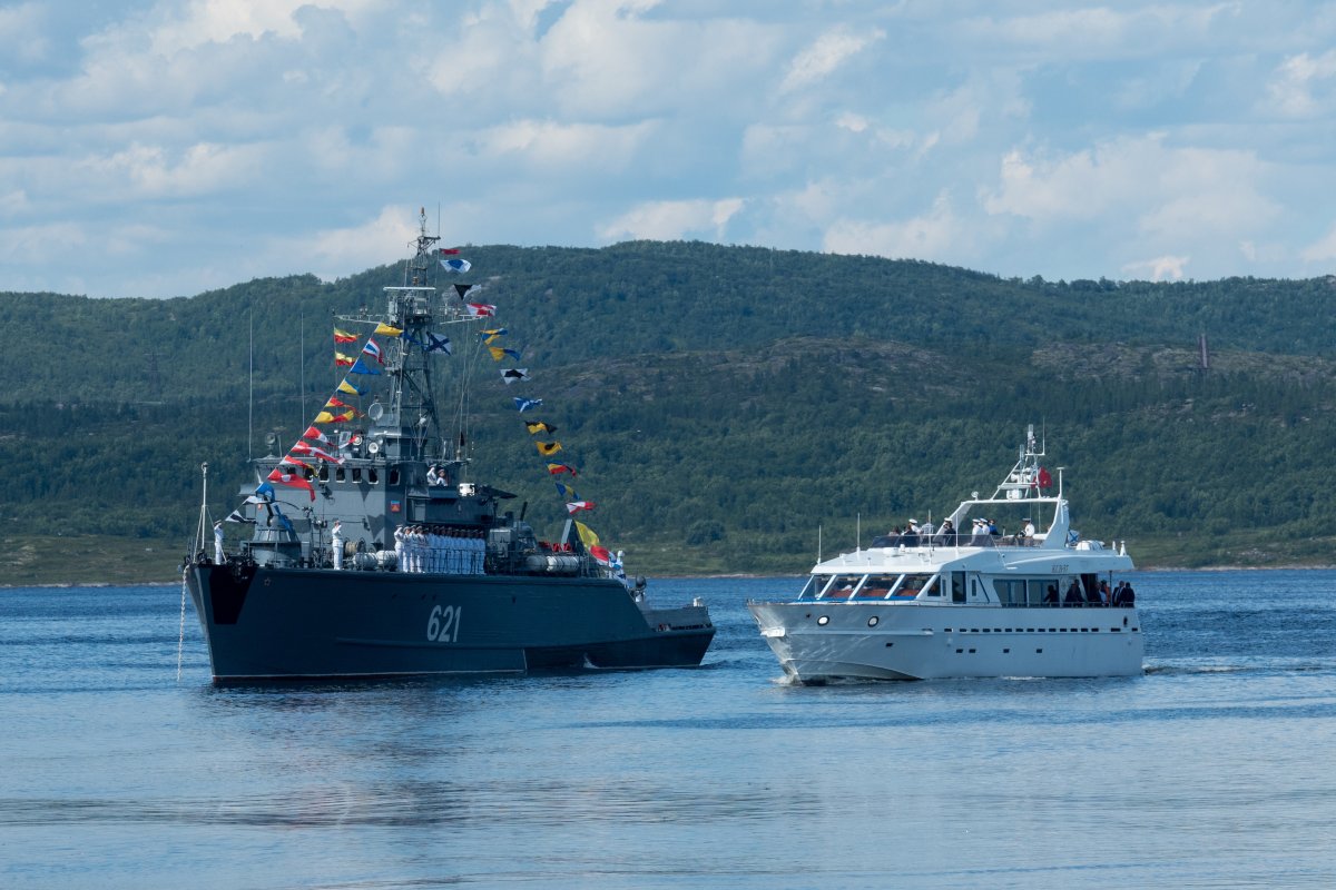 Тяжелый атомный ракетный крейсер "Петр Великий" откроет праздник выстрелами из салютных артиллерийских установок. Северяне увидят прохождение катеров с флагами. Далее будет представлен эпизод по развертыванию корабельных сил флота. Экипажи морского тральщика "Владимир Гаманенко", базовых тральщиков "Соловецкий юнга" и "Ядрин" покажут элемент противоминного обеспечения развертывания сил флота методом проводки за тралами.