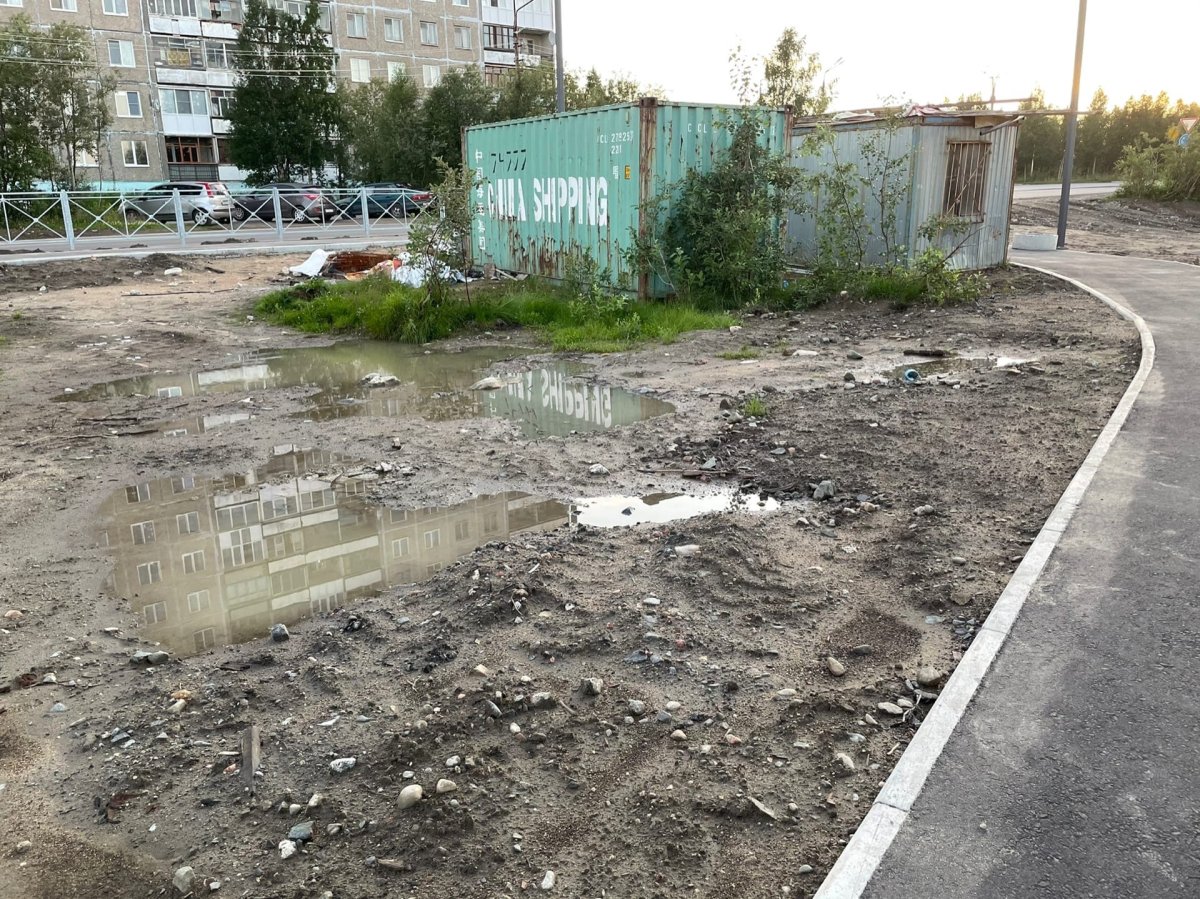 В Мончегорске до сих пор не завершено благоустройство Ленинградской набережной. Жители жалуются на отсутствие озеленения и скопление воды после дождей.