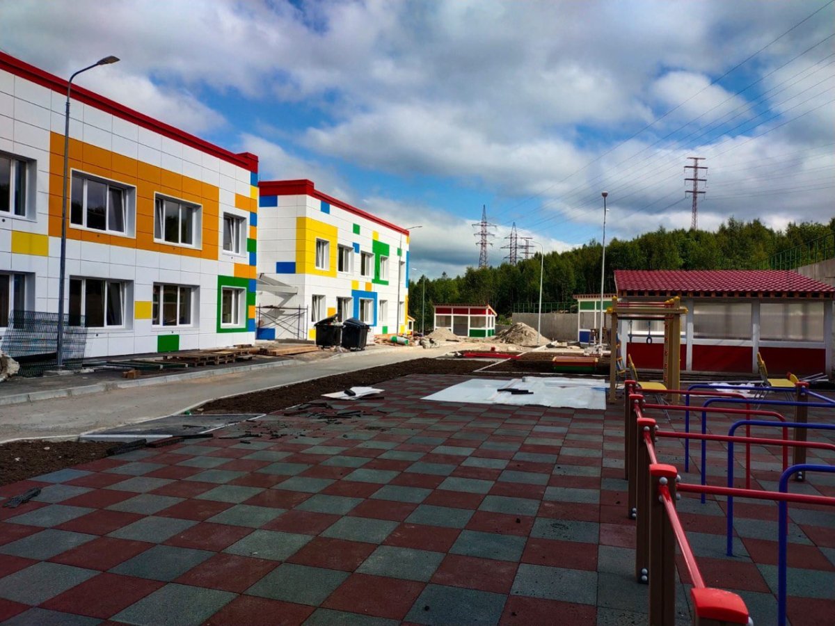 Детский сад на улице Капитана Орликовой в Мурманске находится в высокой технической готовности. Подрядная организация завершает благоустройство прилегающей территории.