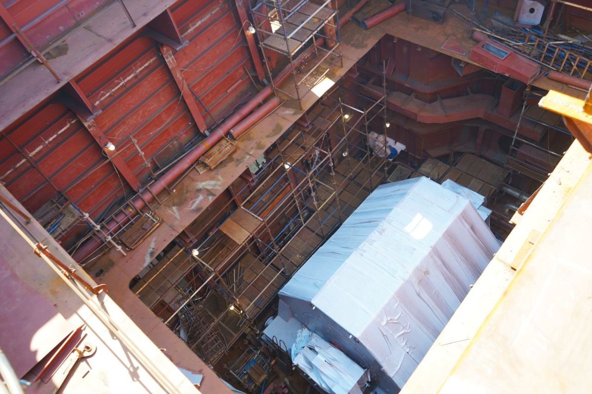 В конце июля на заводе совместно со специалистами ОКБ “Спецтяжпроект” был завершен один из важнейших этапов в строительстве атомного ледокола “Якутия” – подъём и монтаж гребных электродвигателей. ГЭДы погрузили с помощью российской технологии - такелажного портала модульного типа, позволяющей с ювелирной точностью установить на ледокол тяжеловесное негабаритное оборудование весом более 300 тонн. Непосредственно подъём каждого ГЭДа занял порядка десяти часов. Вес одного электродвигателя составляет 310 тонн, а мощность 20 МВт.