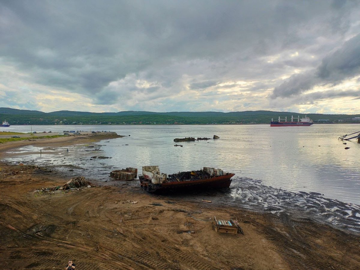 Фрагмент затопленного судна — бывшей плавучей казармы для размещения личного состава флота начнут распиливать на берегу Кольского залива 1 августа.