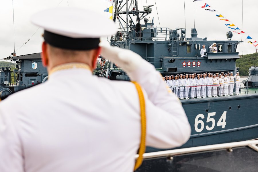 “Андреевский флаг развевается не только в Арктических морях, но и в Средиземноморской и Черноморской морских зонах. Мы живём историей флотилии, её сегодняшним днём и перспективами развития”, – отметил командующий Северным флотом Александр Моисеев.