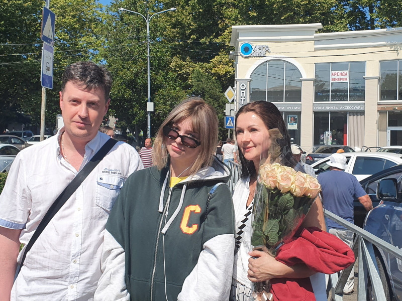 Глава семейства Артем, его супруга Наталья и дочь София впервые приехали на летний отдых в Туапсинский район. На Привокзальной площади города Туапсе под звуки духового оркестра гостей приветствовал начальник управления по развитию курортов администрации района Сергей Доморат.