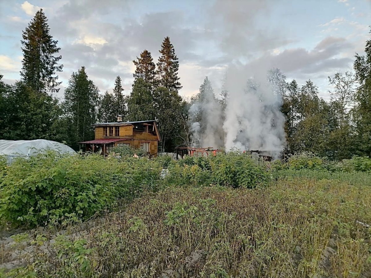 В 22.35 дежурному диспетчеру псообщили о пожаре на 87 км автодороги Кола-Лотта на берегу Верхнетуломского водохранилища. На место происшествия отправились дежурные караулы ПЧ-26, 24 и 20 Кольского филиала. Открытым пламенем были охвачены две хозяйственные постройки, огонь перекинулся и на третье одноэтажное строение. В результате пожара два строения уничтожены огнём полностью, а третье повреждено по всей площади. Общая площадь пожара составила 102 кв.м. Кроме этого огонь уничтожил четыре бензогенератора и два газовых баллона с пропаном объемом 50 л. каждый. Пожар ликвидировали ночью в 2.50. На месте работало восемь огнеборцев и три единицы техники.