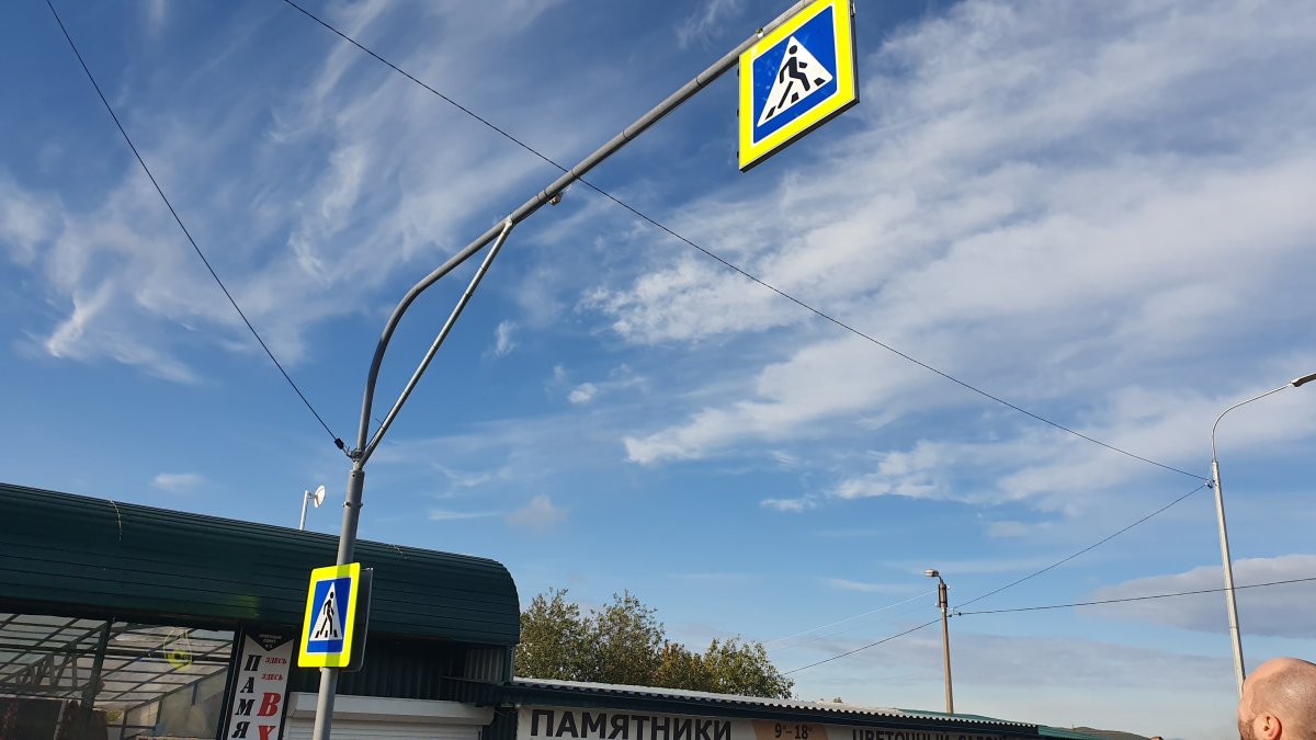 Дублирующие дорожные знаки пешеходного перехода установят над проезжей частью на 29 пешеходных переходах автодорог регионального и межмуниципального значения