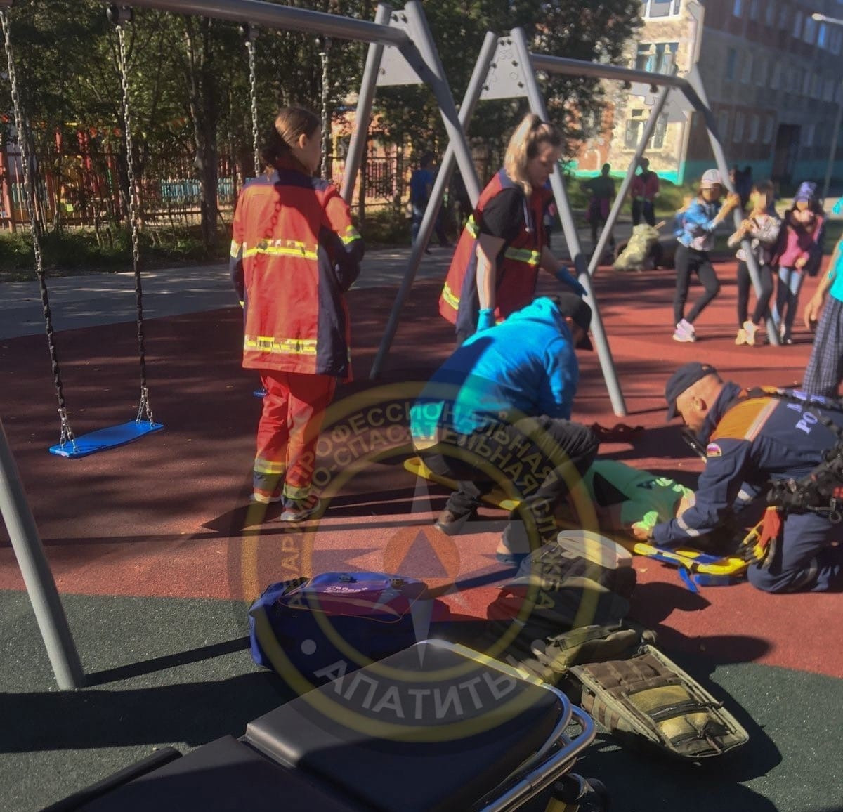 В Апатитах на новой детской площадке у дома №27 по улице Дзержинского пострадал ребёнок. Девочка упала с качелей и получила травму спины.